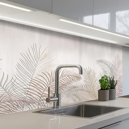 KitchenYeah© Paraschizzi Cucina Adesivo 60x100 cm Pannello Parete Paraspruzzi Pannelli Retro Foglie - Beige - Botanico - Vintage